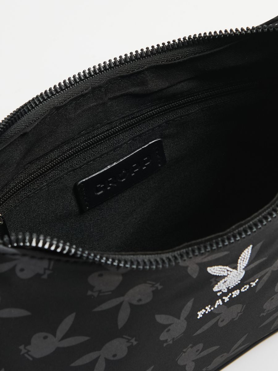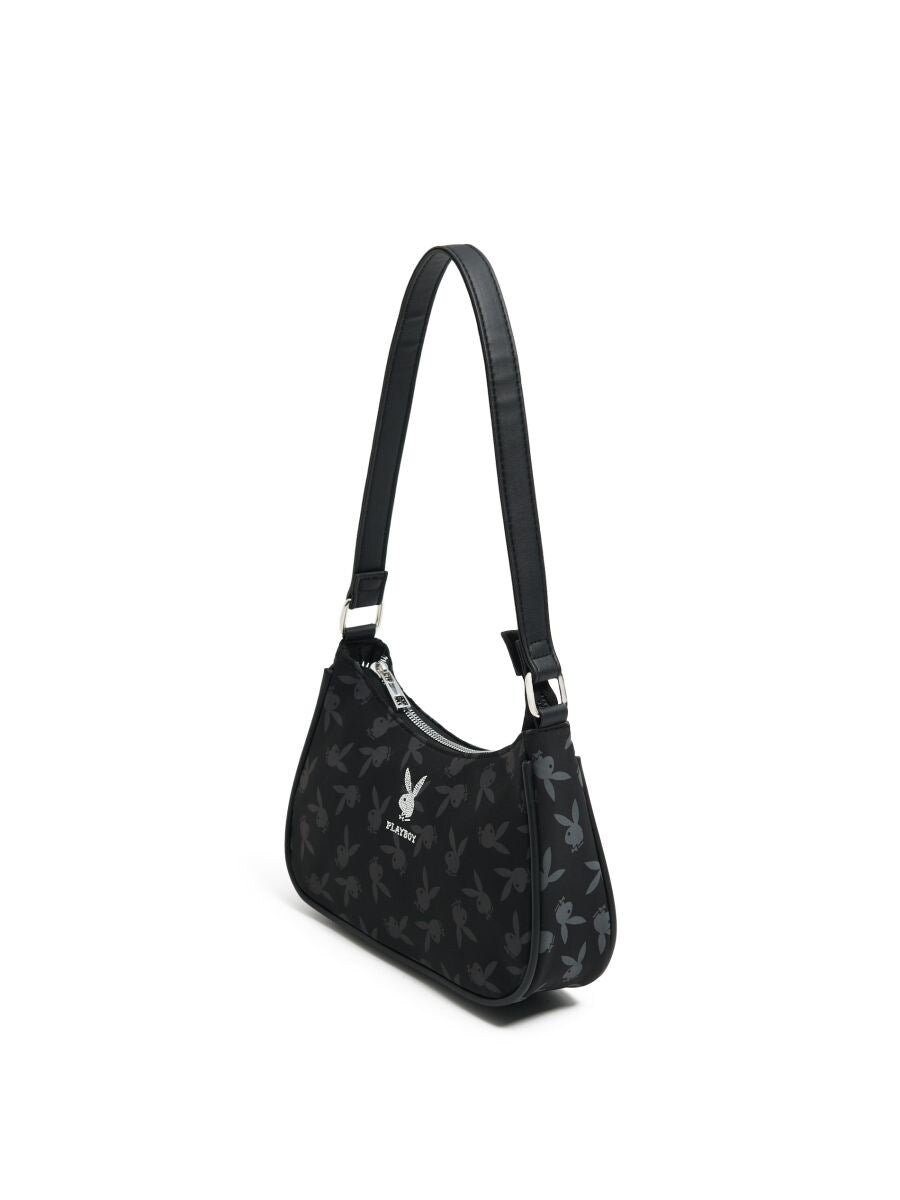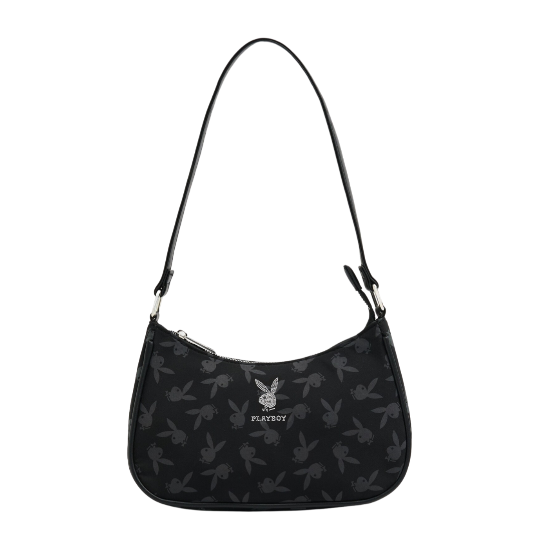 With its sleek baguette silhouette, black tone-on-tone bunny monogram canvas, and shiny metallic Playboy logo, it strikes the perfect balance between subtle elegance and bold statement.